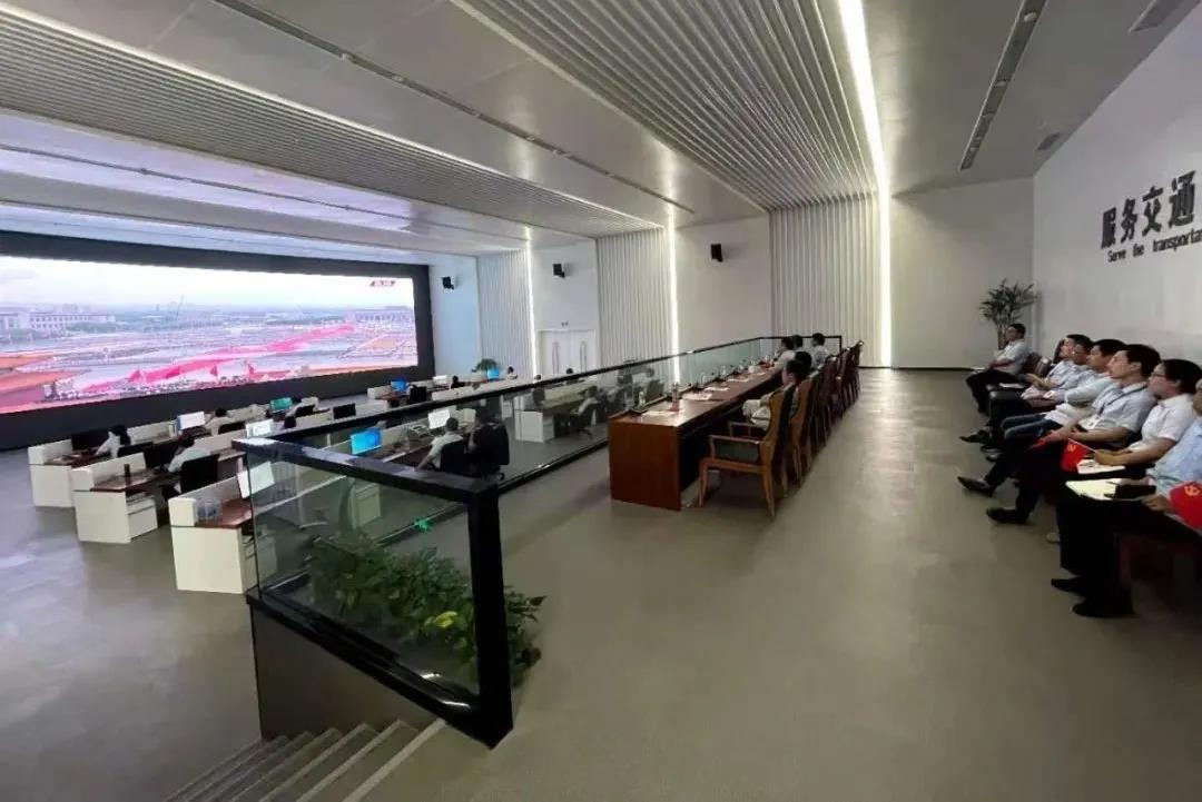 ▲北京路快速化改造工程项目部人员收看大会现场直播