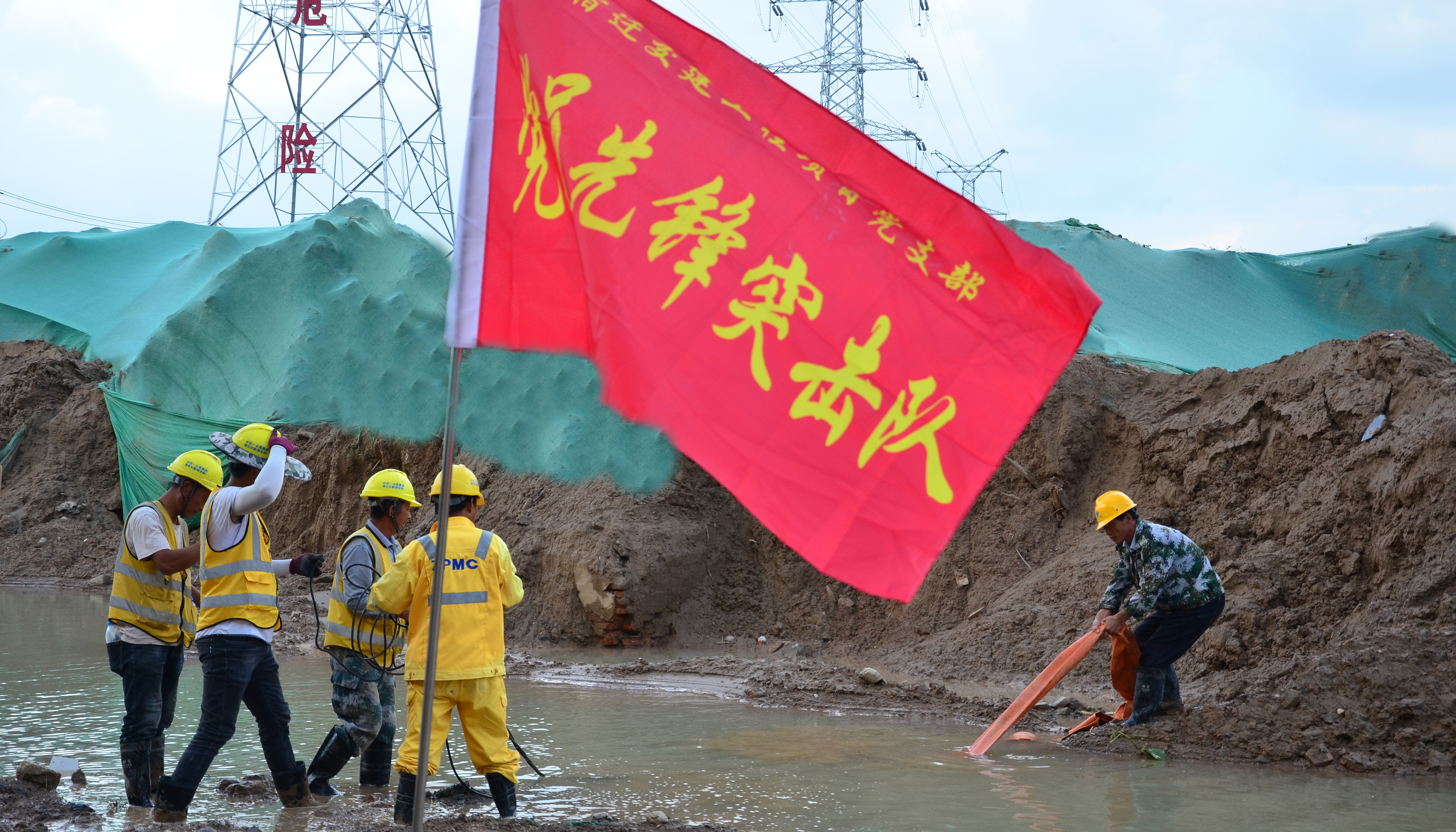在紧要关头站得出来、顶得上去、冲锋在前,党旗,在项目第一线高高飘扬!