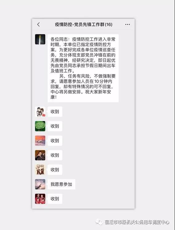 中心支部及时召开专题部署会,决定除固定服务市疫情防控小组、市卫健委、市场监督管理局等单位的人员以外,及时成立由“党员+退役军人”组成的疫情防控先锋工作小组,作为日常机动派遣先锋队,全力保障市直各单位公务出行需求。自1月25日至今,中心共参与防疫一线公车保障驾驶员43人,调度车次219次,往返南京、泰州等地,高质量完成了防控工作检查、医护人员接送、违规用品送检等保障工作。