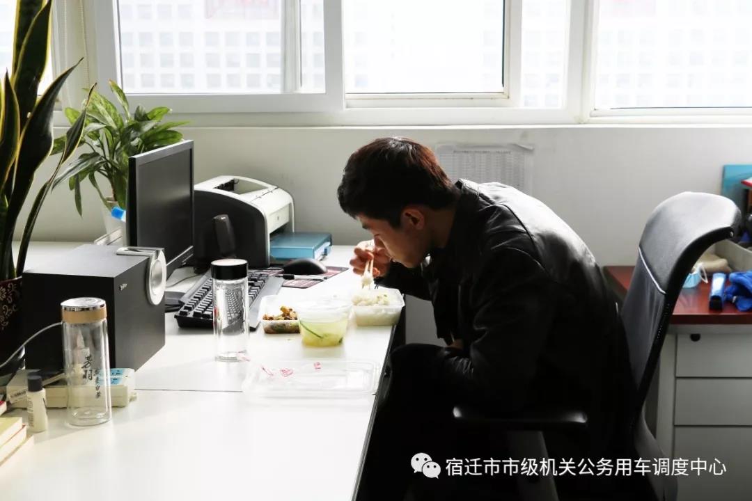 汪伟同志下午3点在吃午饭,防疫工作时间紧、任务重、很多同志的午饭都是在车上吃泡面解决。
