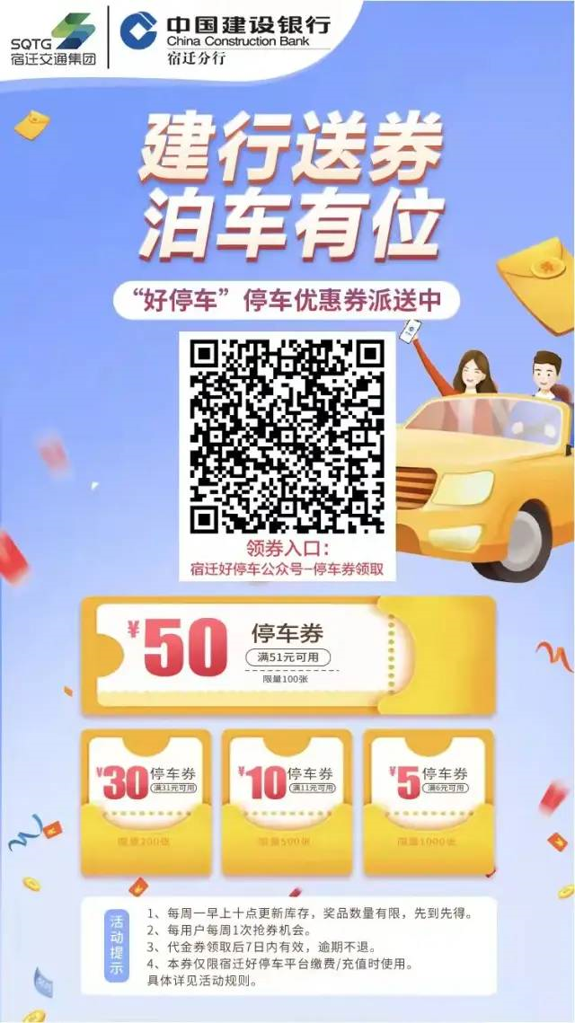 【停车场公司】停车福利券狂撒|建行送券,泊车有位