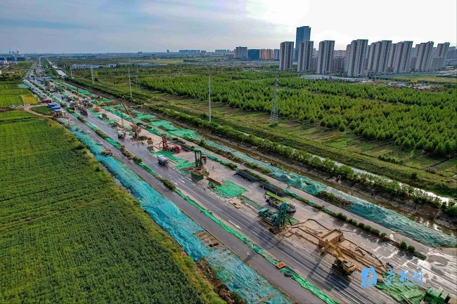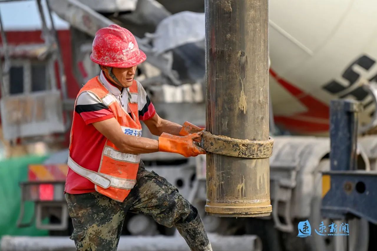 10月4日,在宿迁市张家港大道一期快速化改造工程现场,工人们在紧张施工。据了解,该项目全长约5.6公里,建设内容主要包含道路、桥梁、排水、照明、监控、景观绿化及标志标线等工程。国庆假期里,宿迁市重点工程不停工,建设者坚守岗位,开足马力,确保项目早日建成投入运营。来 源:速新闻