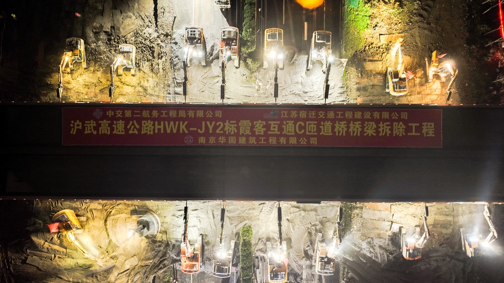 近日,由宿迁交建参建的沪武高速2标项目顺利完成霞客互通上跨C匝道桥拆除任务。此次拆除作业历经14小时,在确保道路次日早高峰前恢复通行的前提下,为后续工程的推进奠定了坚实基础。