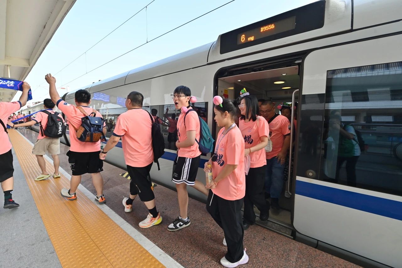 8月3日下午5点10分左右,载有700余名无锡球迷的D9556次专列抵达高铁宿迁站。