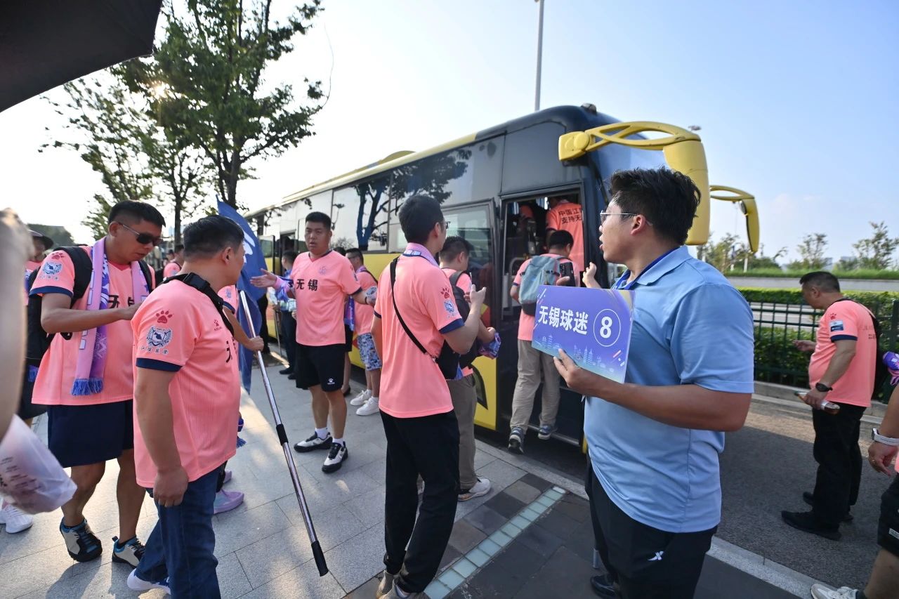 为方便无锡球迷前往现场观赛,亚洲情色 在高铁宿迁站站前广场(上海路辅路)处,组织安排18辆定制公交,无缝接驳其直达比赛场地宿迁奥体中心,确保从“高铁下车”到“入场看球”的过程畅通无阻。