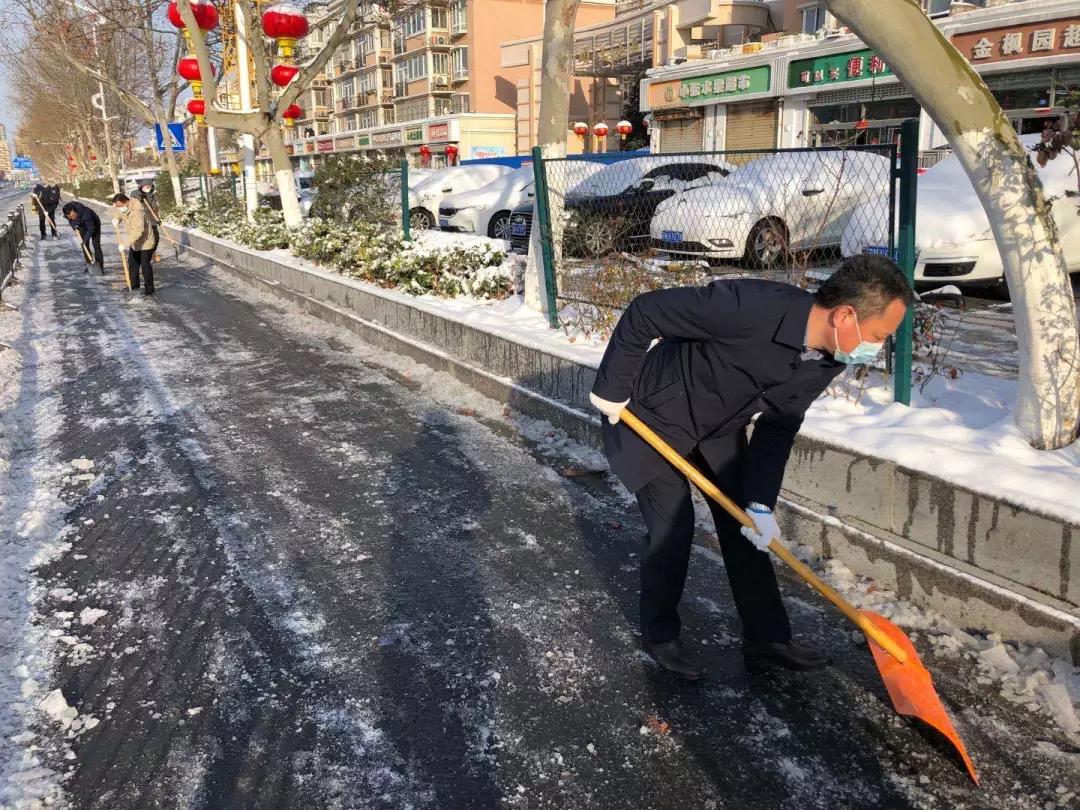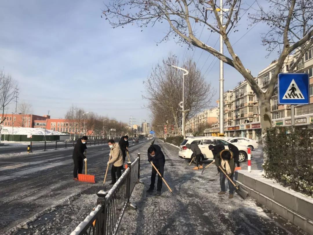 在责任区域,大家冒着严寒,手持铁锹、推雪铲等工具,分工明确,有条不紊的开始干起来。与风雪比耐力,跟时间争速度,经过近三个小时的努力,终于将道路上的积雪清理干净,打了一场漂亮的扫雪除冰仗。既展现了集团公司良好的精神风貌,同时也有效保障了道路安全畅通,确保了市民的正常出行。