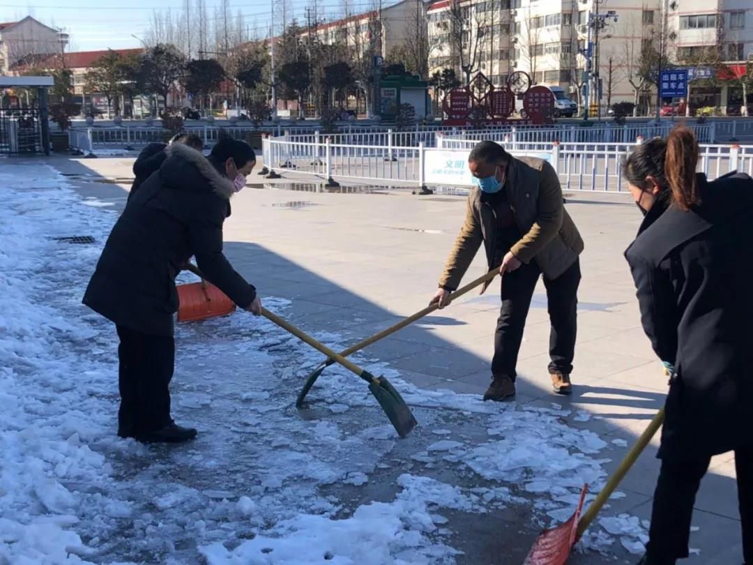 “受冷空气影响,雨雪、寒潮、大风天气同时到访宿迁,请党员先锋队带头做好恶劣天气防控工作。”面对突如其来的恶劣天气,通湖物流园党支部立即行动,做好除雪战“疫”。