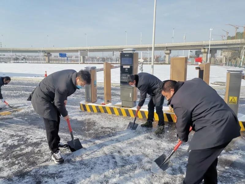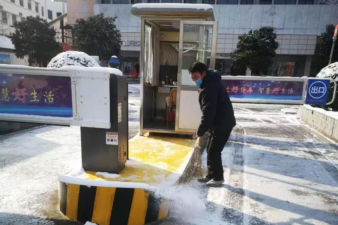 为给司乘人员创造安全的行车环境,确保各停车场进入口畅通,从15日晚7时许,各点人员闻雪而动,伴随着凛冽的寒风,奋战在抗疫、扫雪一线,努力做到雪随下随除。截至16日上午9时,经过工作人员的不断奋战,各停车场车道积雪全部清扫干净,为车辆出入开辟了一条洋溢着温情的通畅方便之路