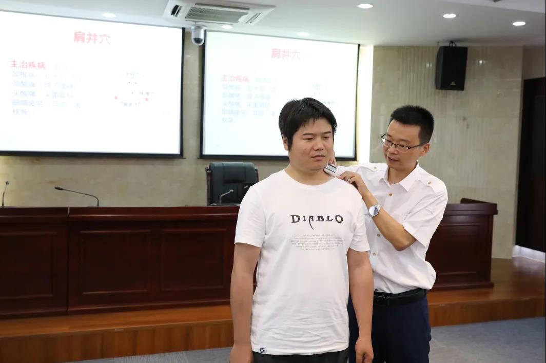 在讲座中,安启辉结合当前集团职工的职业健康状况,通过生动案例结合现场互动,普及了心肺复苏术、常见突发意外事件处置技巧,介绍了常见职业病和慢性病的预防应对措施,传授了常见职业病和慢性病的自我检查、自我预防方法,普及了中医常见穴位养生和心理压力缓解疏导知识。