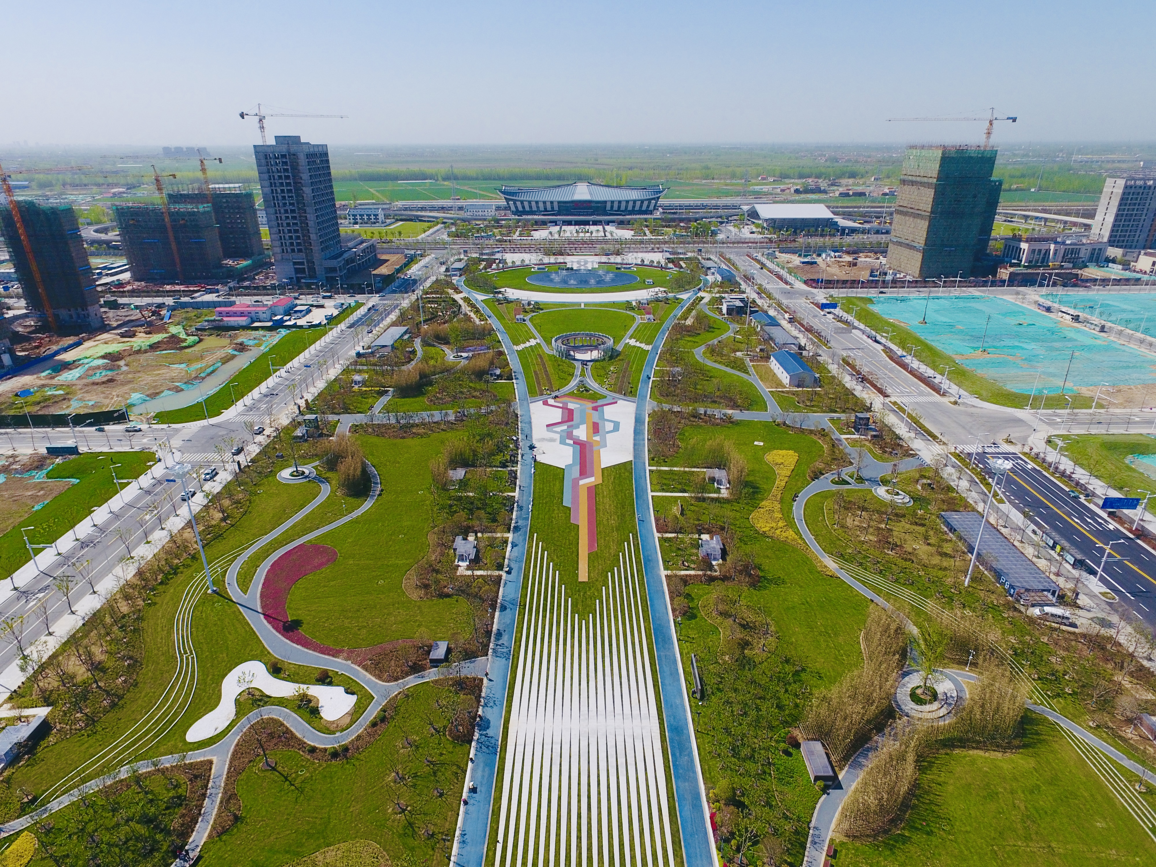 “酒都广场作为高铁宿迁站视线焦点及市高铁商务区核心地标,总体采用中轴形象突出、两侧生态自然的景观格局,强化市高铁商务区的城市轴线、空间序列及生态功能,形成简洁大气的景观布局。”亚洲情色
