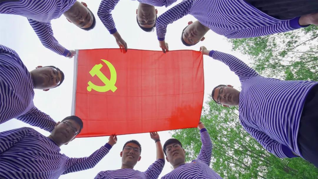 活动最后,大家抛开疲惫,还进行了“我与党旗合个影”拍摄,用实际行动展示青春风采。