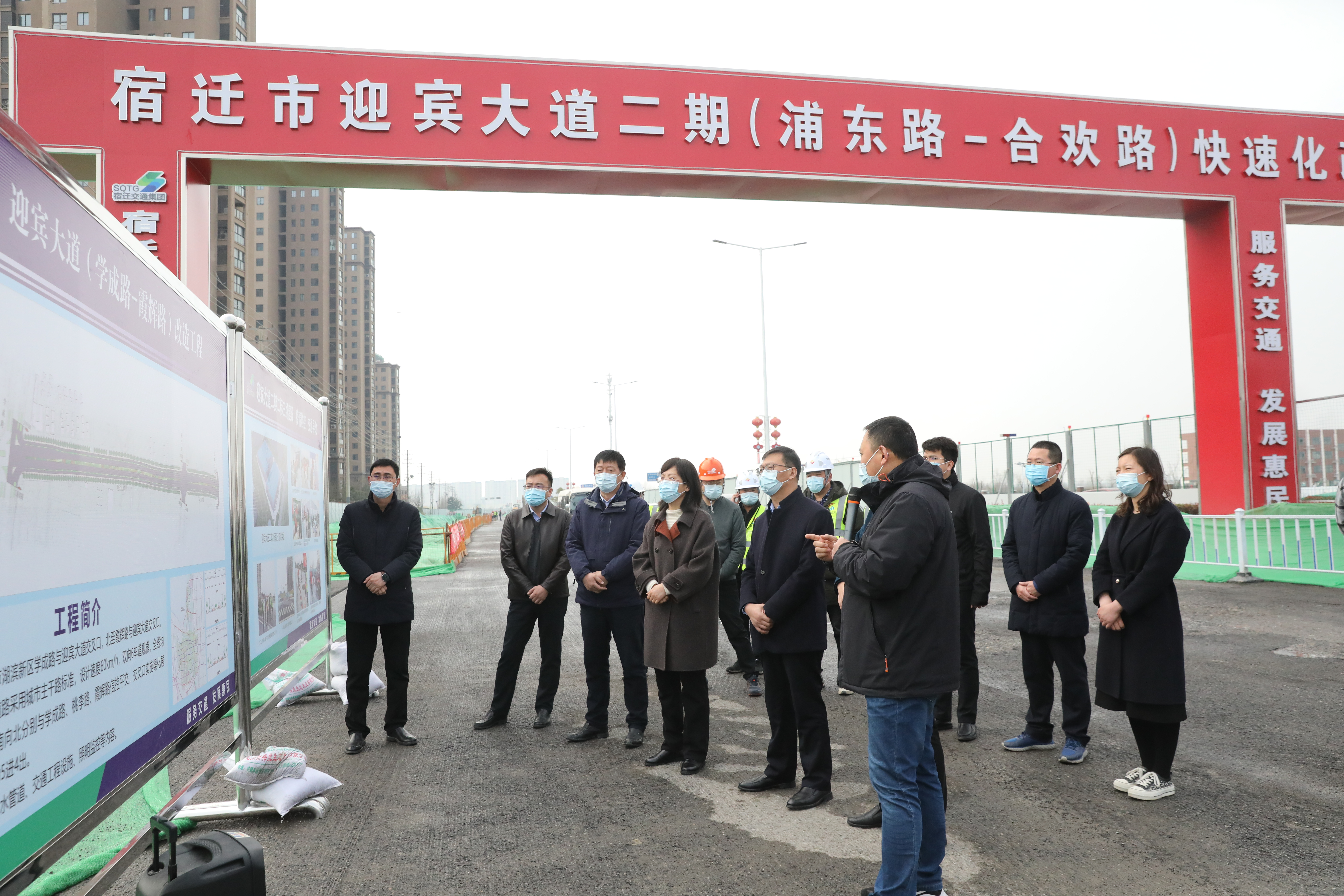 调研组一行先后到迎宾大道二期快速化改造工程各标段、徐淮路改造工程、通湖物流园二期工程、北京路快速化改造工程各标段等处,通过实地察看、听取汇报等方式,详细了解项目进展、疫情防控、文明施工等方面情况。