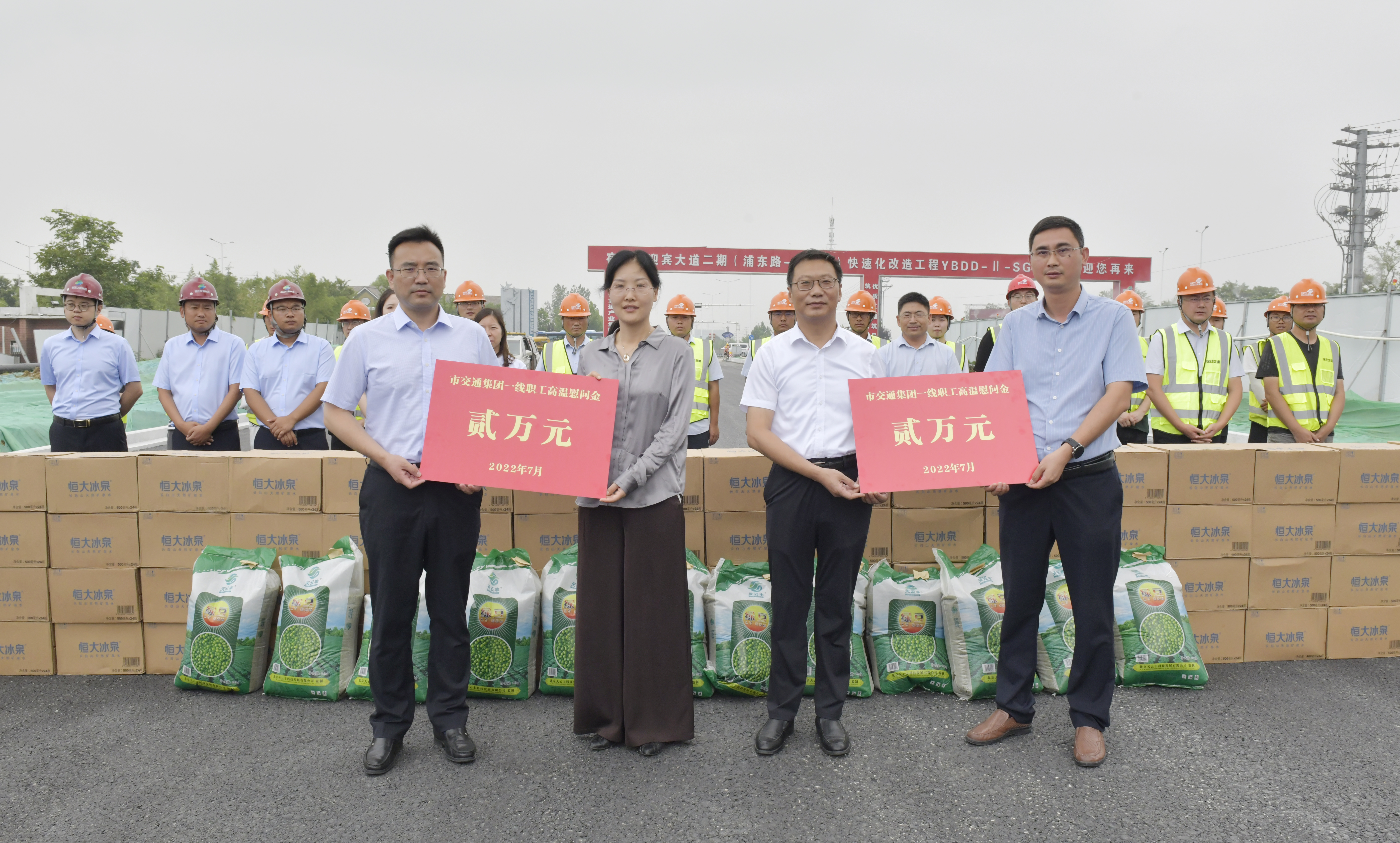总经理史明霞,集团党委书记、副董事长卲岩,副总经理罗东志一行先后到迎宾大道二期快速化改造工程2标段施工现场、雪枫公园公交枢纽站、金鹰北侧新型户外广告设施项目施工现场,看望慰问一线职工,为他们送去防暑降温用品及慰问金,并通过他们向全集团奋战在高温一线的广大职工表示崇高敬意、致以诚挚问候,感谢大家为城市发展和保障民生作出的积极贡献。慰问期间,集团主要领导还详细了解了项目建设进度,仔细询问了职工工作时间安排、安全生产工作落实情况,叮嘱企业负责人在高标准推进各项工作的同时,要切实做好防暑降温工作,全力守护好职工生命安全和身体健康。