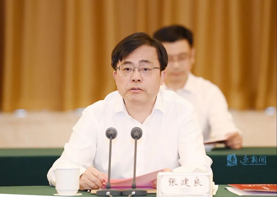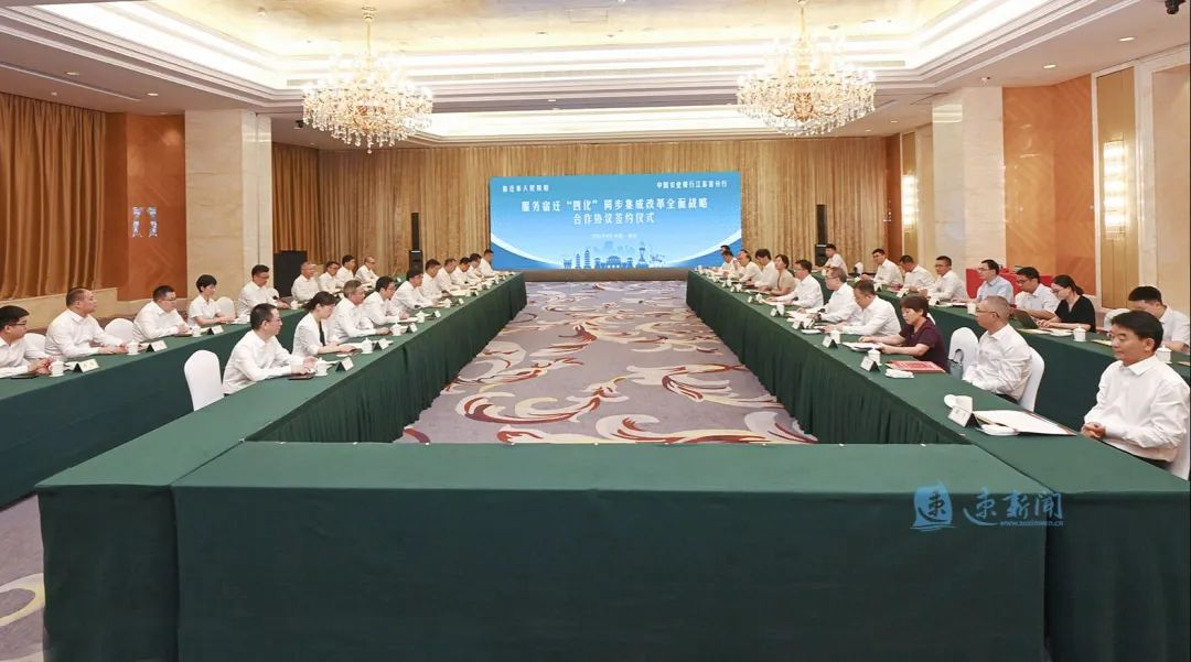 陈忠伟对张建良一行表示欢迎,并简要介绍宿迁上半年经济社会发展情况。他说,当前,宿迁正在奋战三季度、决胜下半场,锚定全年目标全力实现最好结果。双方签订全面战略合作协议,既是各扬所长、互补共赢的战略选择,更是贯彻落实省委工作会议精神的生动实践和具体行动。