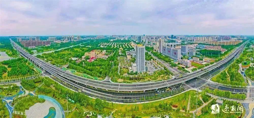 按照“占一还一”原则,通过提前修筑临时导改道路,在边通车边施工的条件下确保道路通畅不断行。全体建设者更是风雨无阻、加班加点、勇毅前行,全线新建连续高架桥3.66公里,共3对上下匝道,地面段设置了民便河、古黄河2座地面桥,相交西湖西路、青海湖路、微山湖路、洪泽湖路、骆马湖路、滨河路、宿支路、金山路、奥体路、学成路等10余条道路,构成了这座城市的血脉和骨架。