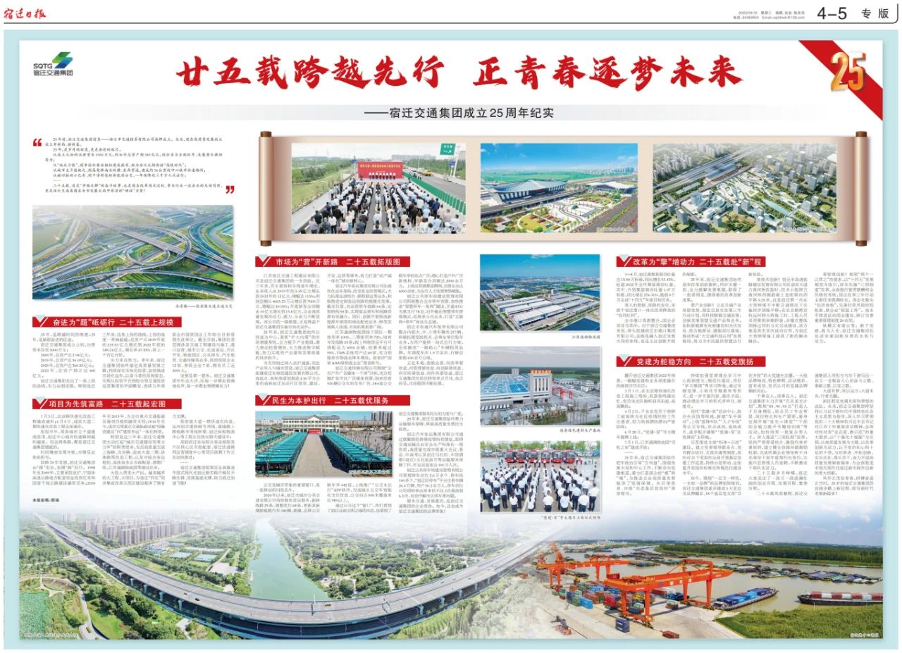 前身——宿迁市交通投资有限公司挂牌成立。自此,便在高质量发展的大道上开新局、谱新篇。