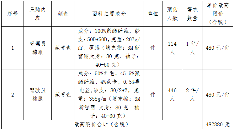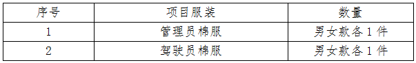 注:1、投标人的每件服装均不得体现商标和投标人名称。