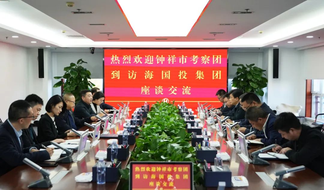 2023年11月6日下午,钟祥市市委书记周军,钟祥市副市长刘涛,钟祥市胡集经济技术开发区主任、胡集镇党委书记胡涛等一行到访海国投集团座谈交流,集团党委书记、董事长张国斌,党委副书记、总经理于志伟,副总经理肖琳娜,相关业务部门及下属企业负责人参加座谈。
