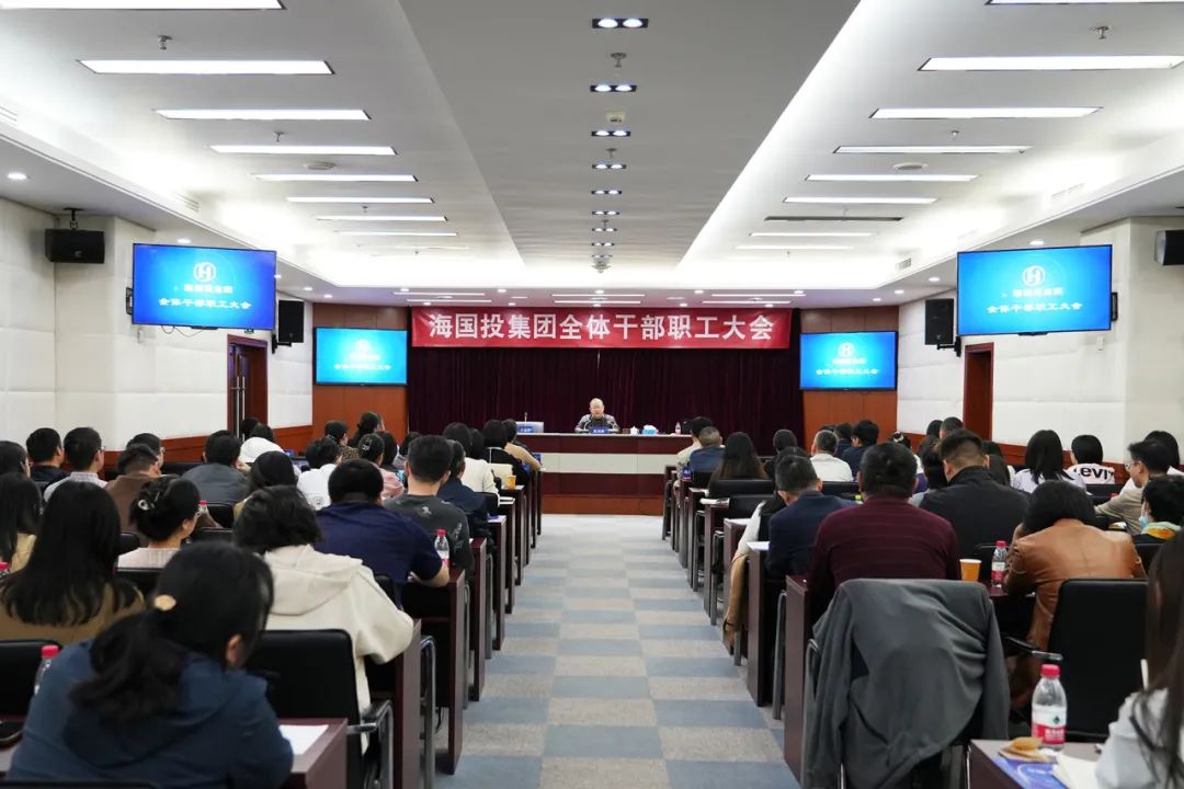 不待扬鞭自奋蹄,履职尽责勇担当。为进一步统一思想、凝聚共识、振奋精神,激励广大干部职工在新时代担当新使命、展现新作为,海国投集团于10月21日(周六)上午在鑫泰大厦报告厅召开集团总部全体干部职工大会。集团党委书记、董事长张国斌参加会议并发表重要讲话。集团总部全体干部职工现场参会。会议由集团党委副书记、总经理于志伟主持。
