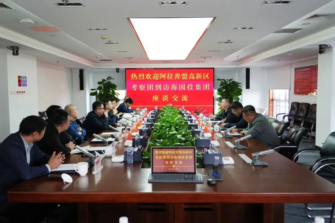 2023年11月3日下午,阿拉善盟高新技术产业开发区党工委书记柳仙德,经济发展局局长胡开明,投资促进局副局长任春晖到访海国投集团,就双方项目推进和深化合作进行座谈交流。集团党委副书记、总经理于志伟,总经济师陈鸥,总经理助理王腾,相关业务部门及下属企业负责人参加座谈。