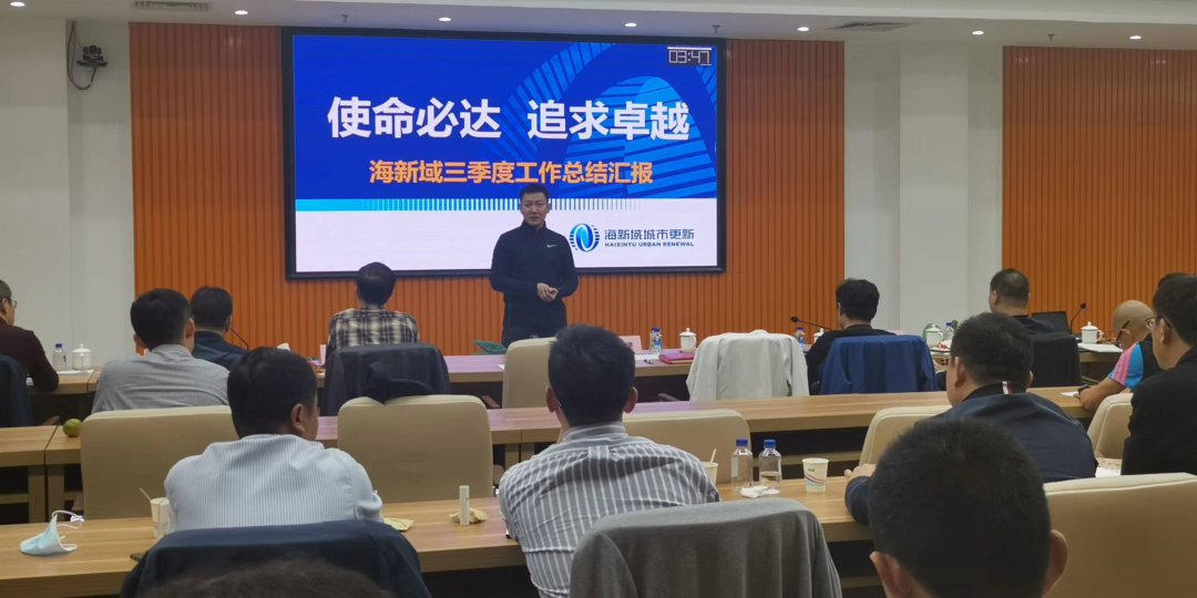 近日,海新域城市更新集团总经理张攀携全体员工在旗下海星医药创新园C区(原中关村医学转化中心)召开第三季度工作总结会。海国投集团经营管理部经理祝贺参加会议。