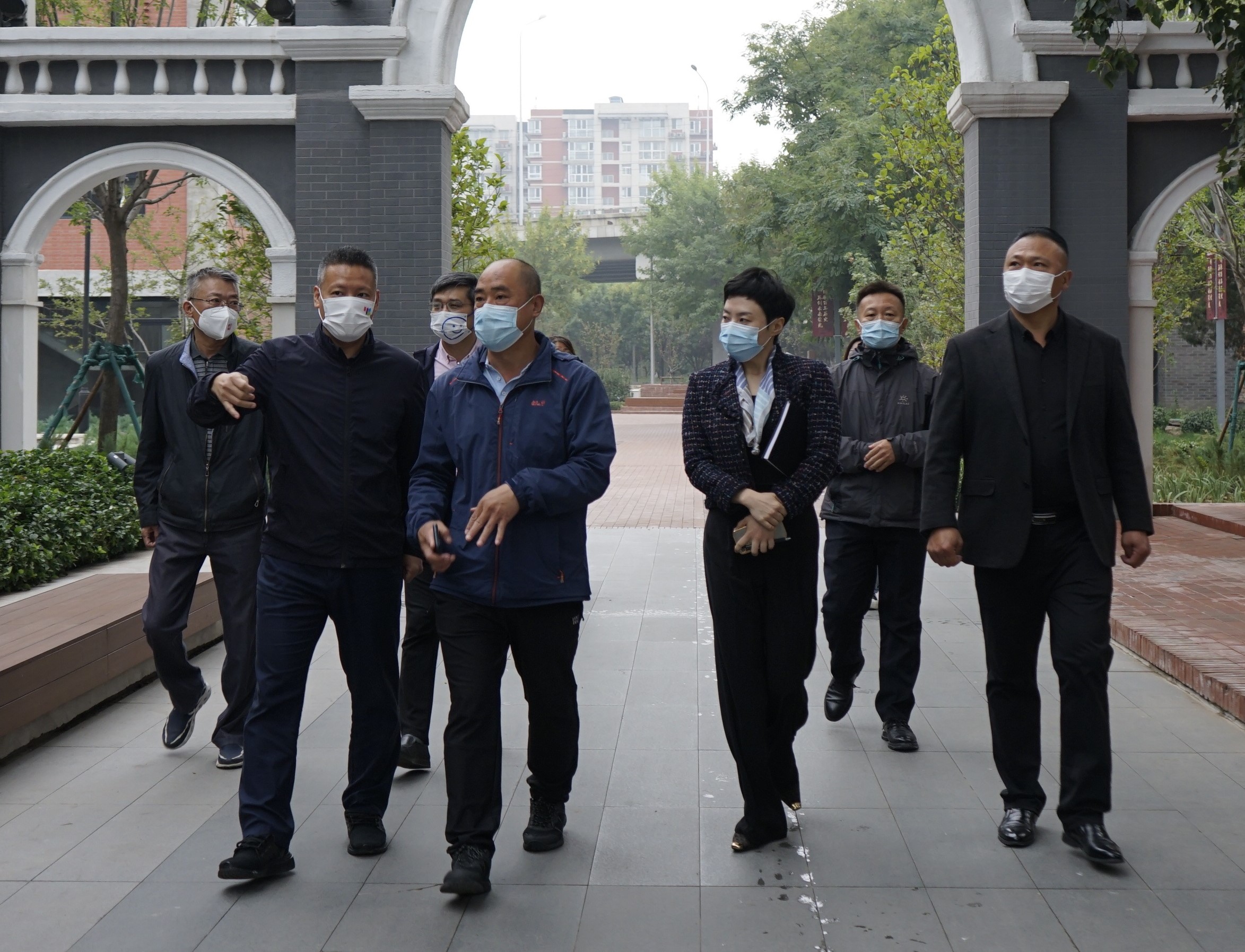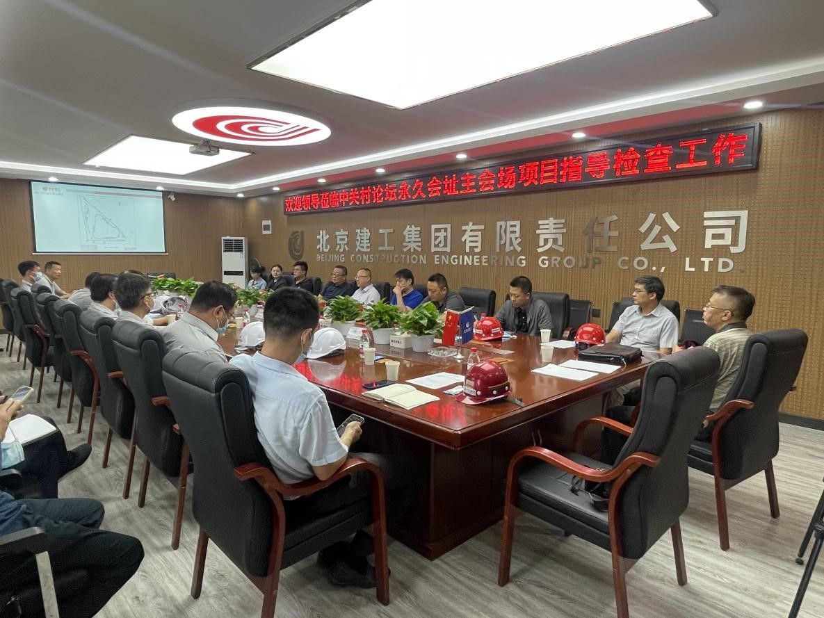 9月28日上午,海国投集团党委书记、董事长张国斌,副总经理李国伟带领集团综合部对中关村论坛永久会址主会场项目进行了国庆节前疫情防控及安全生产现场检查工作。大街公司董事长、总经理张一峰、施工总承包单位建工四建董事长孙振泉陪同检查。
