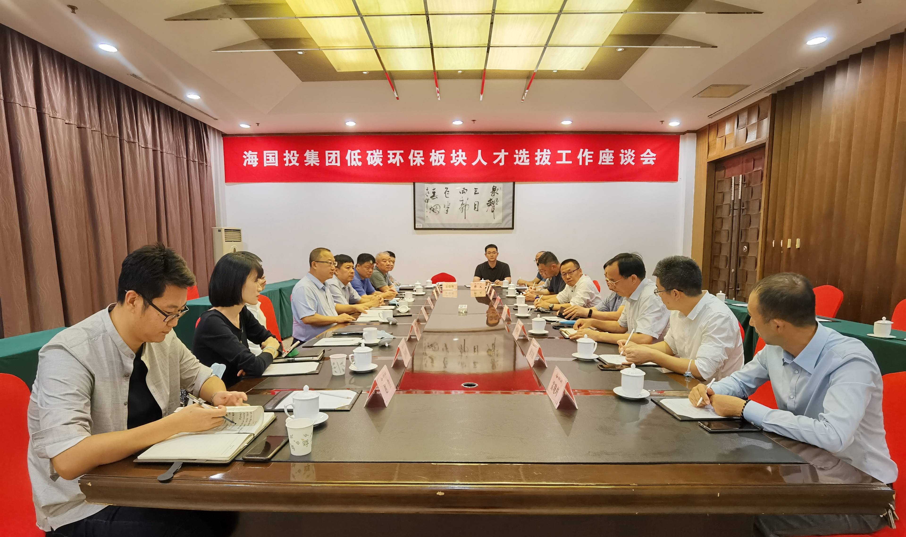 8月25日下午,海国投集团召开低碳环保板块人才选拔工作座谈会。集团党委书记、董事长张国斌同志主持会议并发表重要讲话。集团纪委书记要润生、副总经理李国伟、总经济师陈鸥、总经理助理肖琳娜,经营管理部、人力资源部、海新能科公司、海国京泰公司负责人与在低碳环保板块人才选拔中脱颖而出的候选人代表参加此次座谈。
