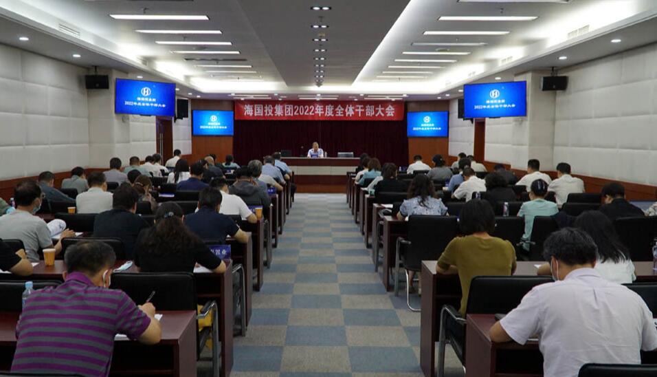 扬帆起航正当时,砥砺前行铸辉煌。为及时总结海国投集团上半年工作,部署下半年任务,进一步动员集团上下解放思想、创新理念、凝聚共识,谋划集团发展战略新方向,集团于6月25日上午在鑫泰大厦报告厅召开2022年度全体干部大会。集团党委书记、董事长张国斌参加会议并发表重要讲话。集团总部领导班子、中层正副职干部、一级监管企业领导班子现场参会,海国龙油公司领导班子在视频分会场参会。会议由集团党委委员、总经理助理肖琳娜主持。