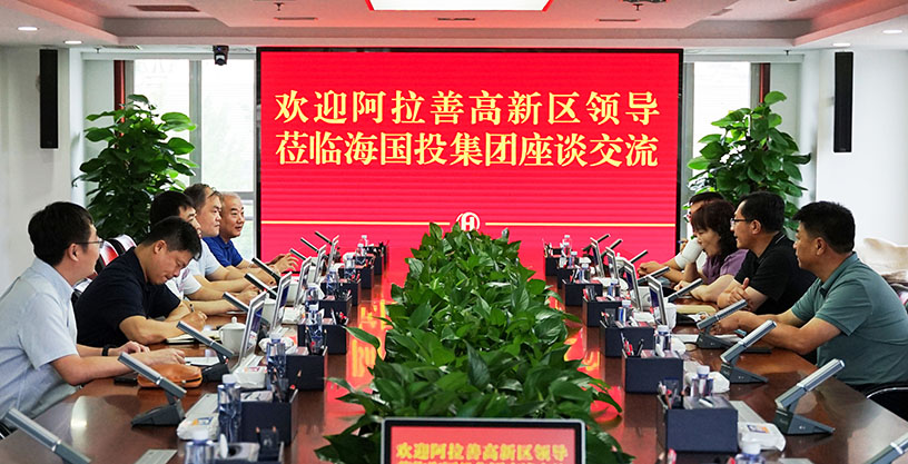 7月27日上午,阿拉善高新区党工委副书记、管委会主任姜庆继,阿拉善高新区管委会副主任魏云广,乌兰布和生态沙产业示范区管委会副主任吴敏一行到访海国投集团,就低碳环保和文化教育板块合作事宜进行座谈交流。集团副总经理李国伟、副总经理卢中军、总经济师陈鸥,海新能科公司董事长张鹏程、常务副总经理赵文涛参加座谈。