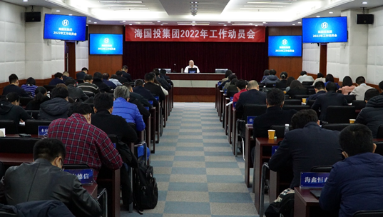 一年春作首、万事行为先。为分析海国投集团当前面临的形势,部署2022年任务,动员和激励广大干部职工统一思想,埋头苦干、勇毅前行,集团于2月26日上午在鑫泰大厦报告厅召开了2022年工作动员会,集团党委书记张国斌主持会议并发表重要讲话,集团全体领导班子、各部门负责人、各一级监管企业领导班子参加本次会议。