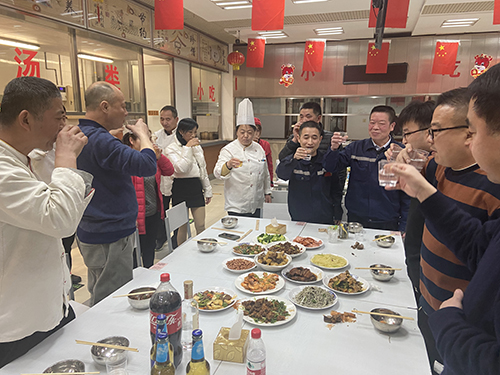 除夕之夜,万家灯火,物业公司响应国家号召,倡导员工就地过年,公司领导在餐厅为在京过年的员工准备了丰盛的年夜饭。海国投集团党委书记张国斌同志一行亲临现场,和大家一起欢聚一堂,共度除夕,共话家常,并为留京员工送上了节日问候和新春祝福,让留京员工感受到了浓浓的年味和家的温暖。