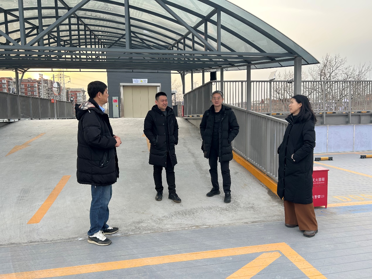 2月28日下午,区城管委副主任韩贺,静态交通科科长范大勇到龙徽停车场走访调研,了解停车场建设及运营情况。海国投集团重大办主任张丽芳,智享出行公司董事长齐晓北陪同调研。