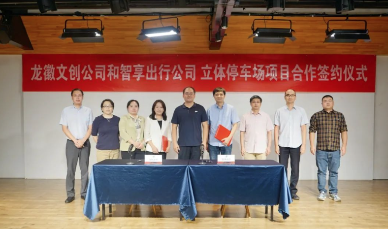 2023年9月1日下午,北京龙徽国际酒文化创意产业有限公司(以下简称“龙徽文创公司”)与北京智享出行科技发展有限公司(以下简称“智享出行公司”)在园区艺术馆举行园区立体停车场项目合作签约仪式。龙徽文创公司负责人何欢,智享出行公司董事长、总经理齐晓北作为双方签约代表签署合作协议。海国投集团副总经理卢中军及合作双方领导班子成员代表出席此次签约仪式,共同见证了这一重要历史时刻。