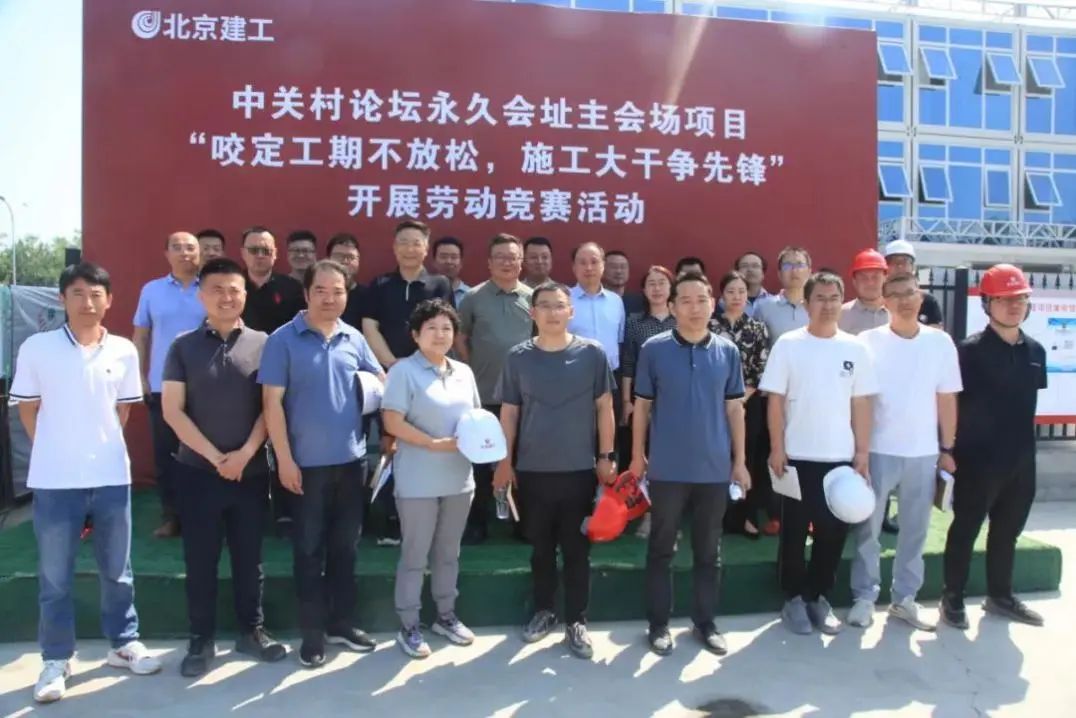 为确保中关村论坛永久会址主会场项目安全高质高效完成“8.31”竣工目标,6月14日上午,中街公司同建工四建公司一同在论坛项目施工现场组织召开“咬定工期不放松,施工大干争先锋”劳动竞赛动员会,本次劳动竞赛将从工程质量、进度、安全、材料、后勤五个维度进行全方位评比。中街公司董事长张一峰,四建公司党委副书记、总经理李化,东方华太建设监理公司总监王万龙,四建公司副总经理贾洪振,四建公司副总经理、总工程师、中关村论坛项目总指挥长张莉莉等领导出席本次动员会。