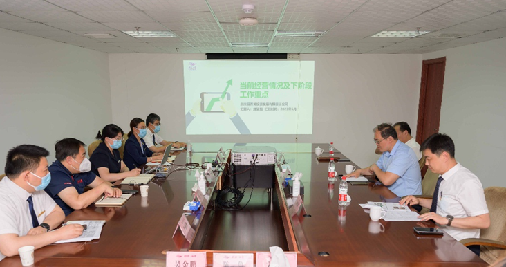 2023年6月1日下午,海国投集团副总经理卢中军到北京稻香湖投资发展有限责任公司,实地了解公司所在园区经营项目布局并听取汇报。