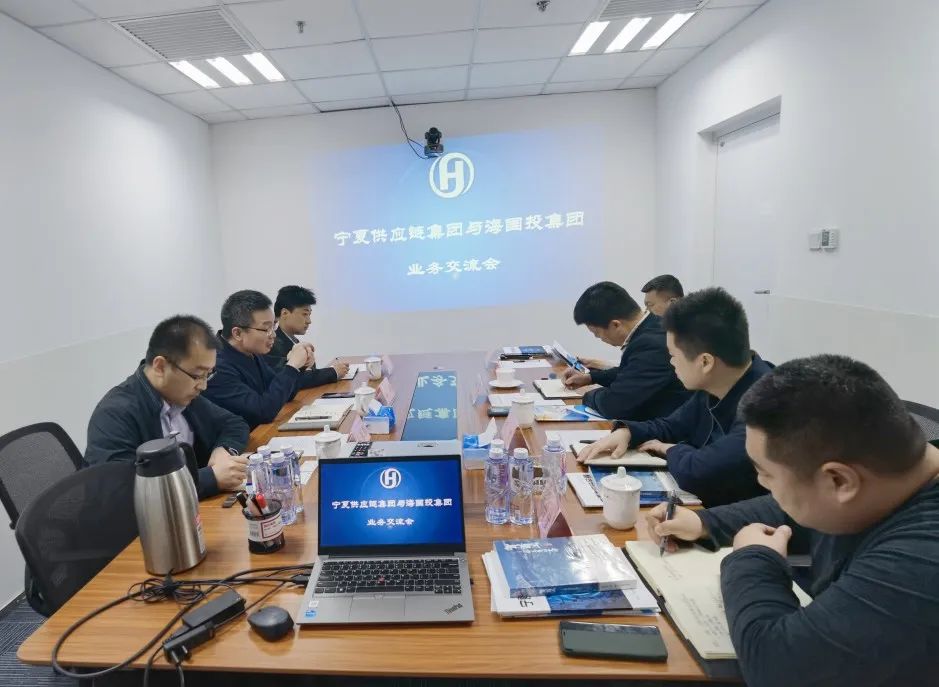 2023年3月22日上午,宁夏供应链集团与海国投集团旗下海鑫恒泰、海新晟举行业务交流会,双方就项目合作、业务模式、产业需求等事项开展深入交流。海国投集团总经济师陈鸥、经营管理部经理祝贺、海鑫恒泰贸易公司董事长王岩、海新晟实业公司总经理助理赵怡洁及宁夏供应链集团总经理马涛、风险总监杨乐,青铜峡煤炭储配交易中心副总经理吴银银参加会议。