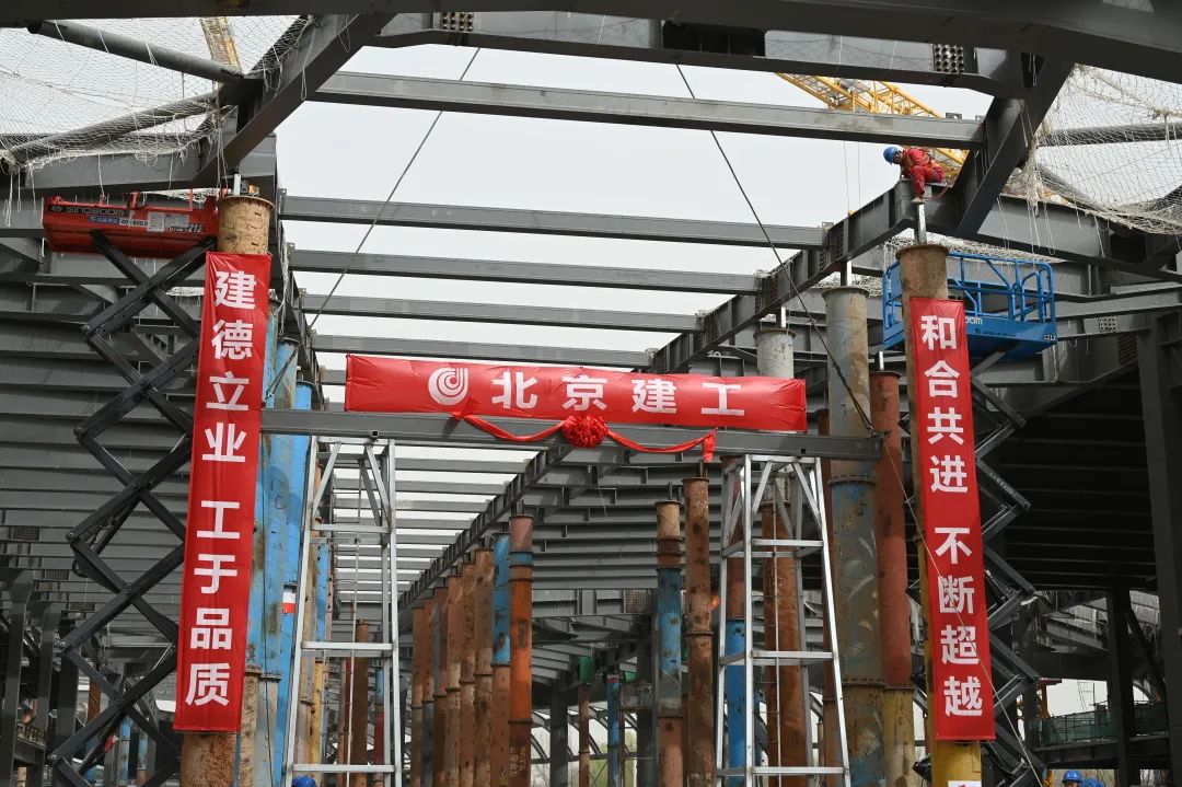 3月22日上午,中关村论坛永久会址工程施工现场再次传来捷报,随着最后一根结构钢梁稳稳升空,吊装就位,这座备受关注的首都“科技会客厅”如期实现主体结构封顶,向着8月底工程整体竣工交付的节点目标迈出了关键一步。