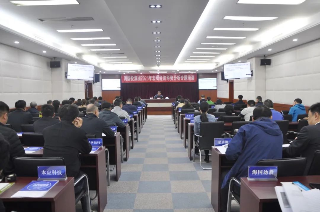 为深入学习2023年全国两会精神,准确把握宏观经济发展脉络,全面提升集团领导干部履职能力,海国投集团于4月1日上午在鑫泰大厦报告厅举办了2023年第二期宏观经济形势分析专题培训,主题为“2023年宏观经济运行与高质量发展”,集团总部领导班子、各部门负责人、一级监管企业领导班子共70余人参加了现场培训。海国龙油公司领导班子在视频分会场参会。培训由集团党委委员、总经理助理肖琳娜主持。