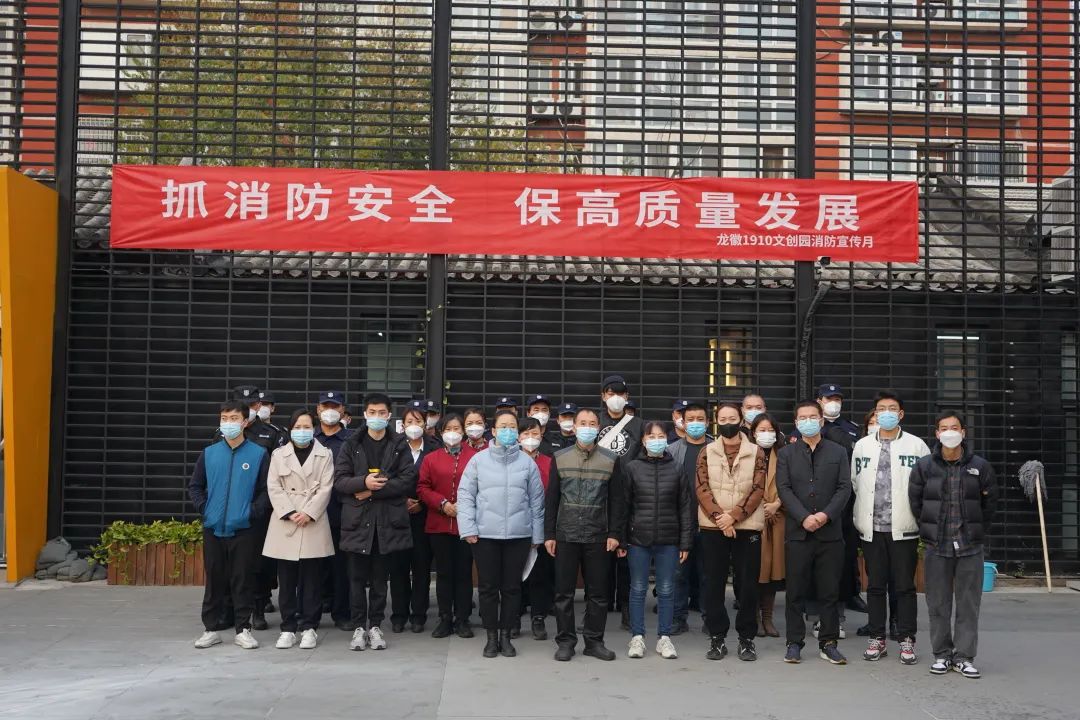 2022年11月9日是全国第31个消防宣传日。为营造关注消防、学习消防、参与消防的浓厚氛围,提升全员消防安全意识和抵御灾害的能力,龙徽1910文化创意产业园组织园区公司、各商户、保安保洁人员开展消防演习活动。