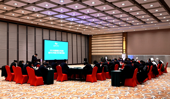 2022年2月23日,稻发公司组织召开了2021年度工作总结暨2022年工作计划会。稻发公司总经理孟繁强、酒店全体经营班子成员以及各部门中层管理者参加会议,党总支书记、工会主席李强主持会议。