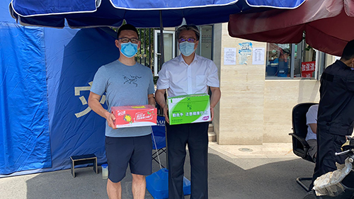 由于发生新发地批发市场聚集性疫情,北京市应急相应级别提升至二级,防控形势十分严峻。面对疫情防控工作出现的新变化,海国投全体下沉党员职工迅速行动起来,重启下沉值守工作,继续担起社区防疫的重任。6月18日下午,公司党委副书记、工会主席张泽根代表公司党委,看望慰问值守在一线的党员职工,为大家带去了饮用水、口罩等防疫物资。