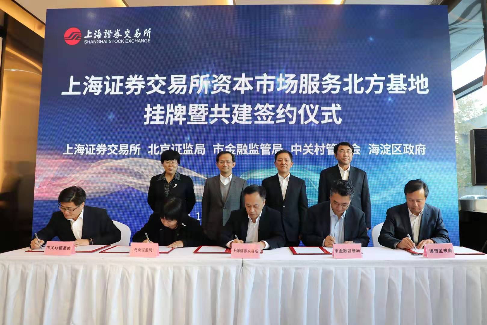 11月13日下午,上海证券交易所资本市场服务北方基地(简称“北方基地”)签约及揭牌仪式在融汇国际大厦举行。北方基地由上海证券交易所、北京证监局、北京市金融监管局、中关村管委会及海淀区政府共同建设。本次落地融汇国际大厦,寓意着北方基地将以北京为中心,辐射整个北方地区,加强北方资本市场服务,促进区域内实体经济发展。