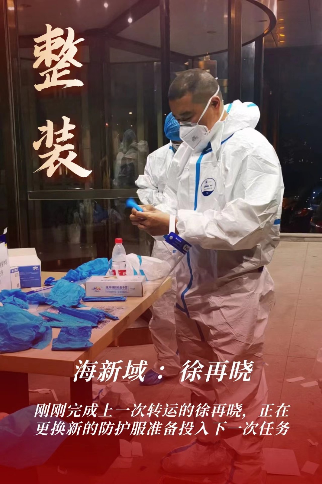 简单收拾行李后,13日晚上徐再晓按时来到了集合地报到,在这里和另外3名来自海国投集团的干部:田硕、侯亦、张世裕汇合,在进行岗前培训后迅速投入到了支援转运专班的工作中。