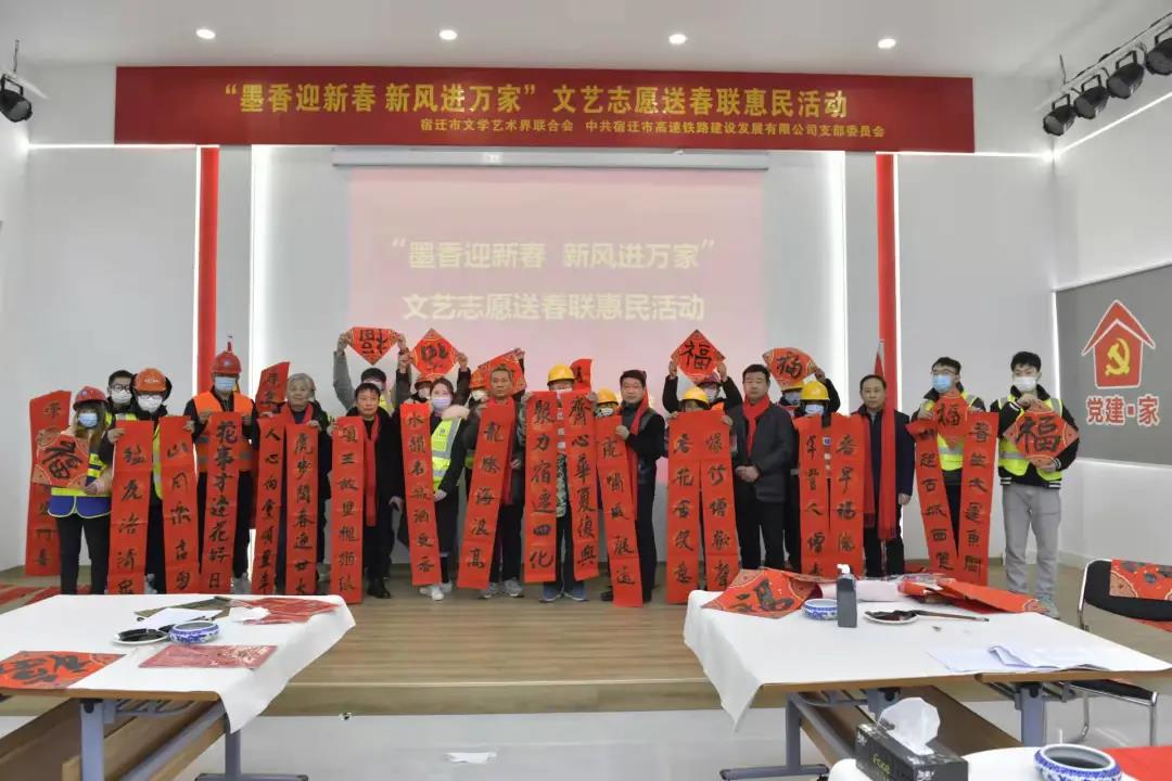 1月20日,宿迁市文联与高铁公司党支部共同开展“墨香迎新春 新风进万家”文艺志愿送春联惠民活动。