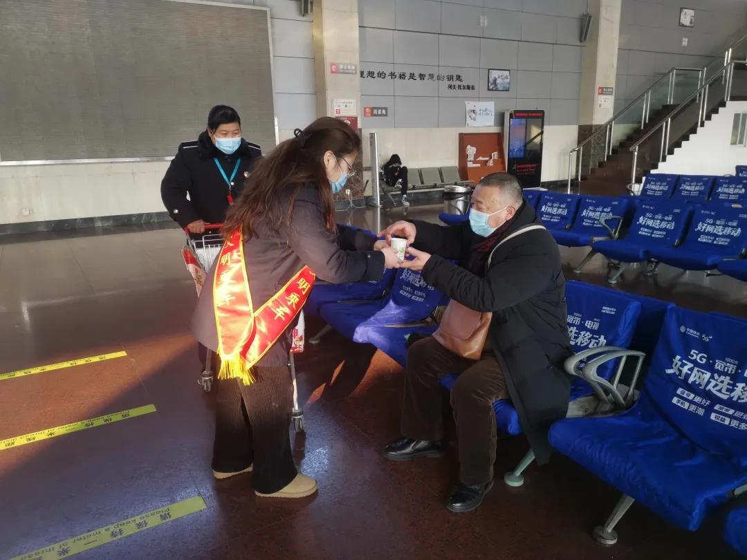 活动中,全体党员到宿迁汽车客运站开展疫情防控、志愿服务等工作,筑牢疫情防控平安线,温暖旅客幸福回家路;引导旅客依次排队有序进站,帮助老年旅客出示“苏康码”“行程码”,持续落实真情服务理念,方便旅客出行;组织专人到候车大厅为候车旅客送热水,让旅客们感受到旅途温暖。