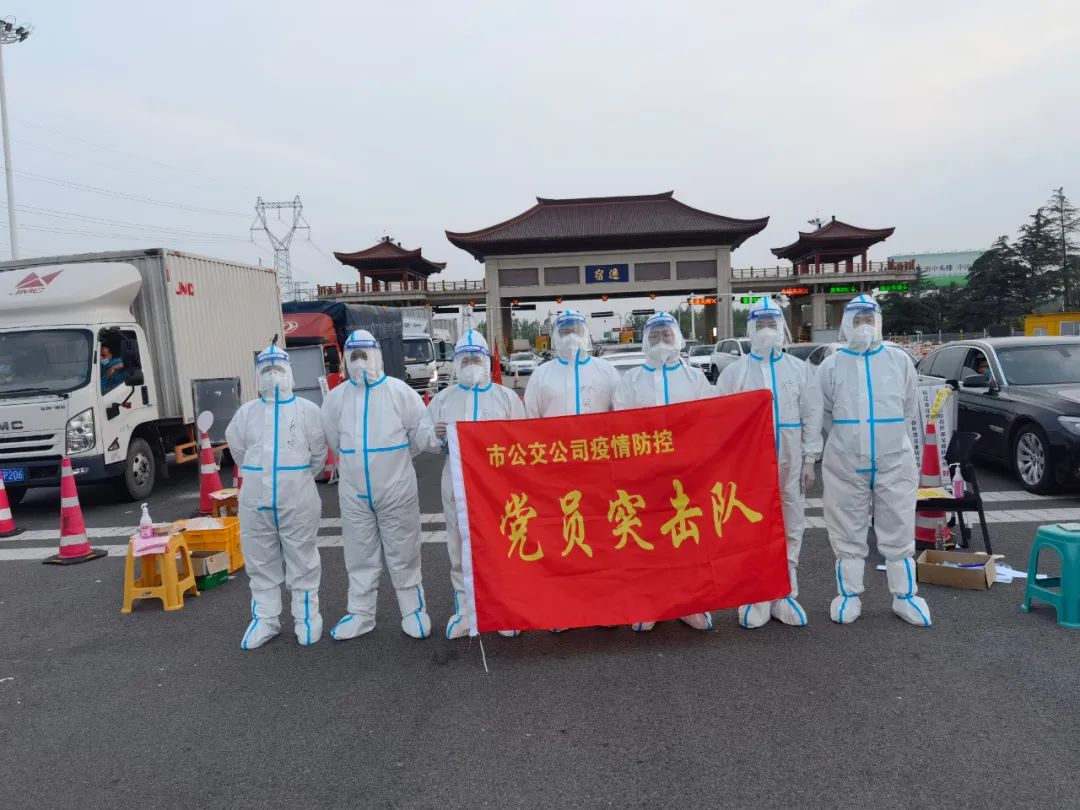 4月20日,公交公司党总支7名党员组成的党员突击队,在宁宿徐高速公路宿迁主线收费站,开展“战‘疫’一线党旗扬”主题党日活动,期间,他们对往来所有车辆开展检疫排查,一丝不苟地完成疫情防控检查各个环节工作。
