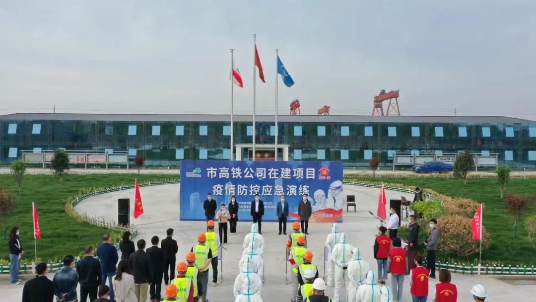 4月20日,高铁公司党支部在迎宾大道二期快速化改造工程1标段项目部开展“战‘疫’一线党旗扬”疫情防控应急演练活动。
