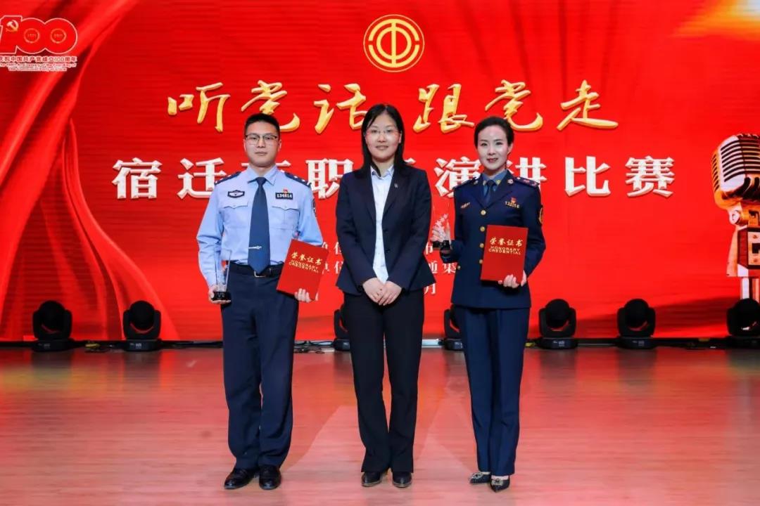 宿迁市总工会副主席徐法林为获得三等奖选手颁奖