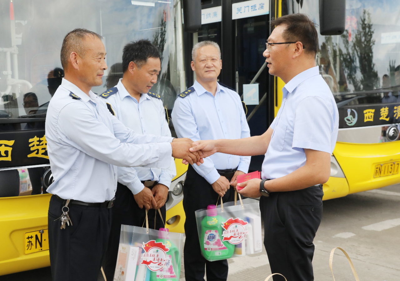 301路“西楚清风号”退役军人示范线现有32人,由公交公司从各线路中选拔对党忠诚、业务精湛的退役军人组成,是一支素质高、作风硬、业务精的公交驾驶员队伍。在公交调度中心,慰问组一行详细了解线路设置、运营、客流等情况,希望他们保持退役不褪色的本色,牢记公交服务民生的使命,为增强人民群众公交出行幸福感发挥作用、再立新功。