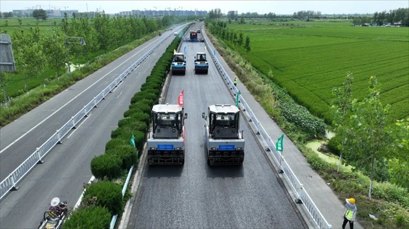 据了解,沥青无人集群施工技术,运用北斗定位系统、高速通信系统、避障感知系统等智能技术融合环境感知信息和可靠的控制算法,基于道路建模、路径自主规划、智能安全调度、速度协同等,让无人机群按照事先设置好的摊铺速度、运行轨迹、碾压速度协同作业,实现摊铺速度与碾压速度最优匹配,进行连续不间断施工,在减少作业人员的同时,保证安全且高质量的路面摊铺和碾压作业。同时,沥青无人集群施工技术的大数据工况存储功能实时存储施工过程中设备状态、施工质量数据并进行分析,实现施工数据可追溯,施工过程可视化和质量透明化。
